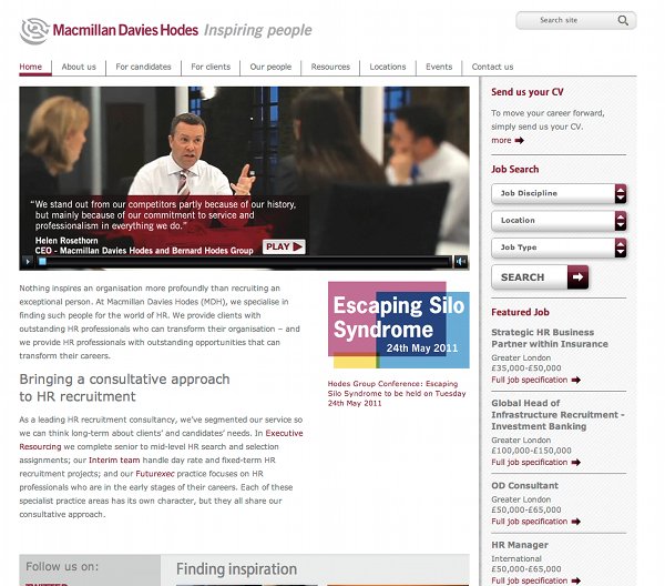 Hodes Digital (part of the Bernard Hodes Group) hired me as a WordPress and PHP / MySQL backend developer to work with their front end developers. This project involved the construction of a new website for a sister company who are a recruitment consultancy specialising in human resources, Macmillan Davies Hodes.
